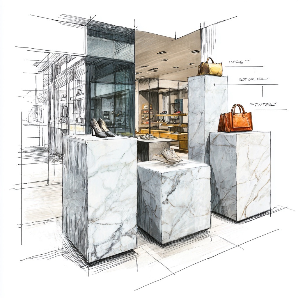 Buon giorno , sono interessato per una esposizione di scarpe presso il ns show-room di Milano delle vs soluzioni piedistalli a cubo , affiancati o si voli in grès porcellanato , le vs proposte di colore e prezzi/ tempi di produzione consegna .