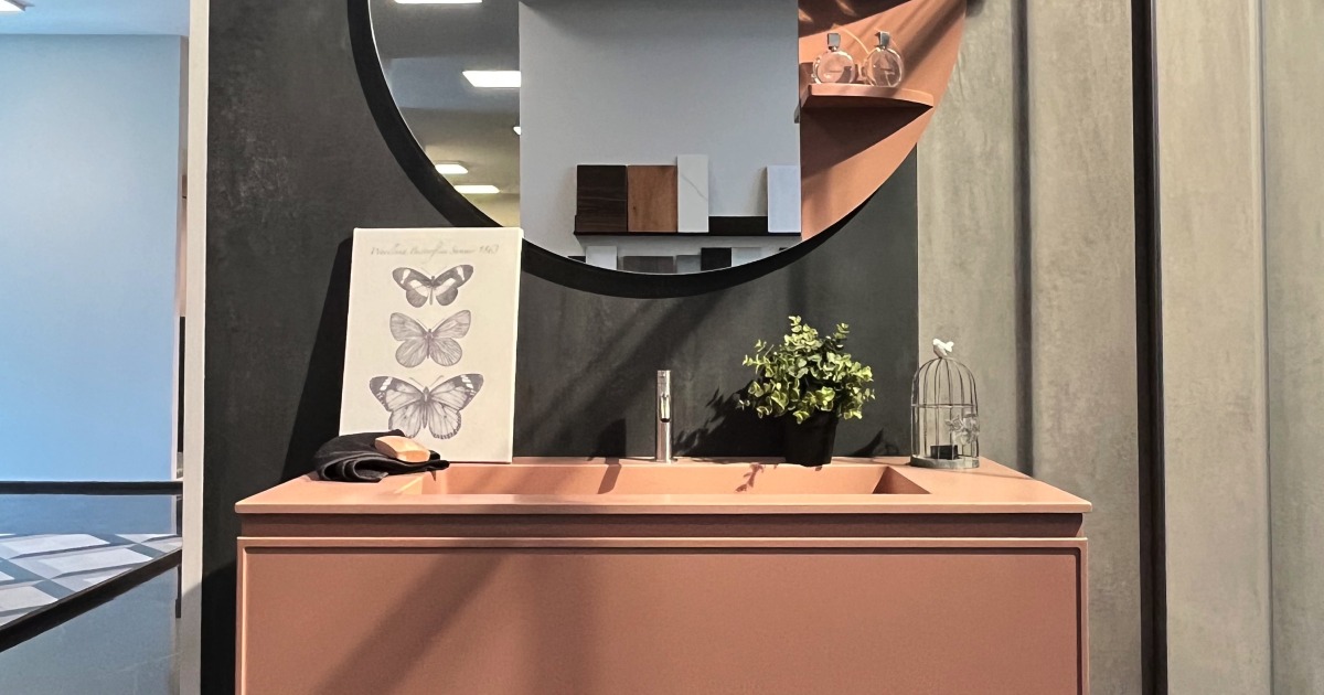 Mobile bagno total pink nelle tonalità del rosa cipria,