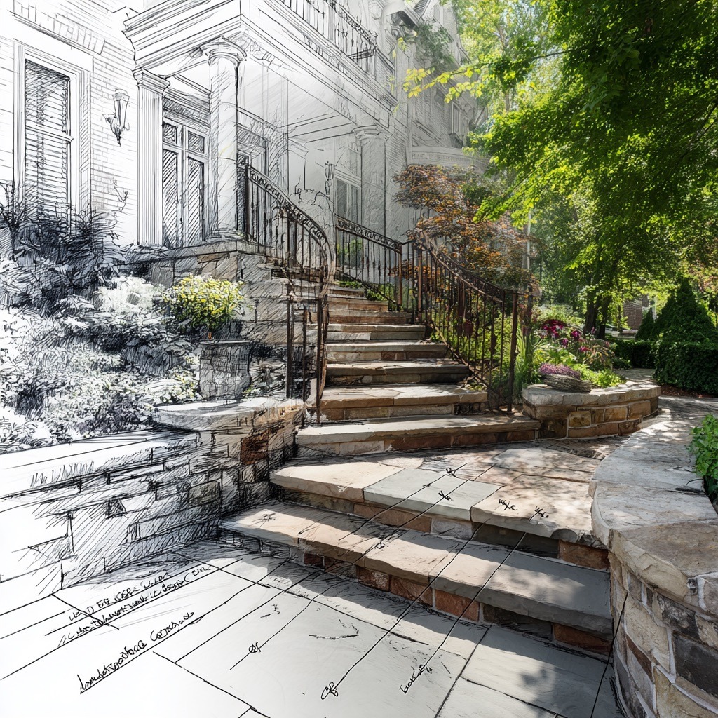 Le tipologie di scale che più frequentemente ci troviamo a realizzare sono le prime, quelle che vanno a compensare un lieve dislivello, nel giardino, tra il piano della zona giorno e la strada. La scalinata di ingresso influisce in modo determinante nell'abitazione e va studiata e progettata accuratamente. Solitamente si connette ad un ingresso, che può essere un portico, ed al marciapiede che contorna l'abitazione.