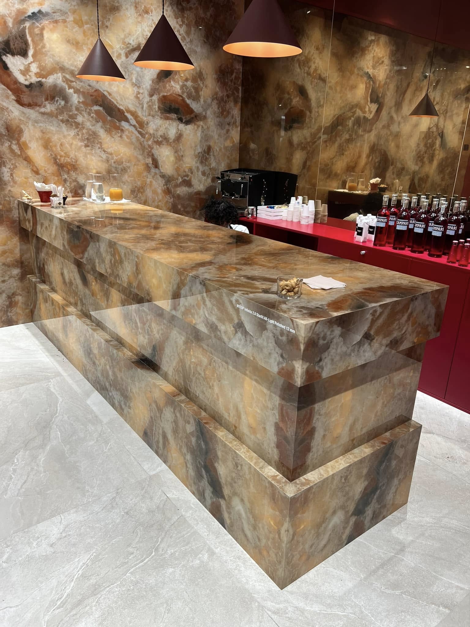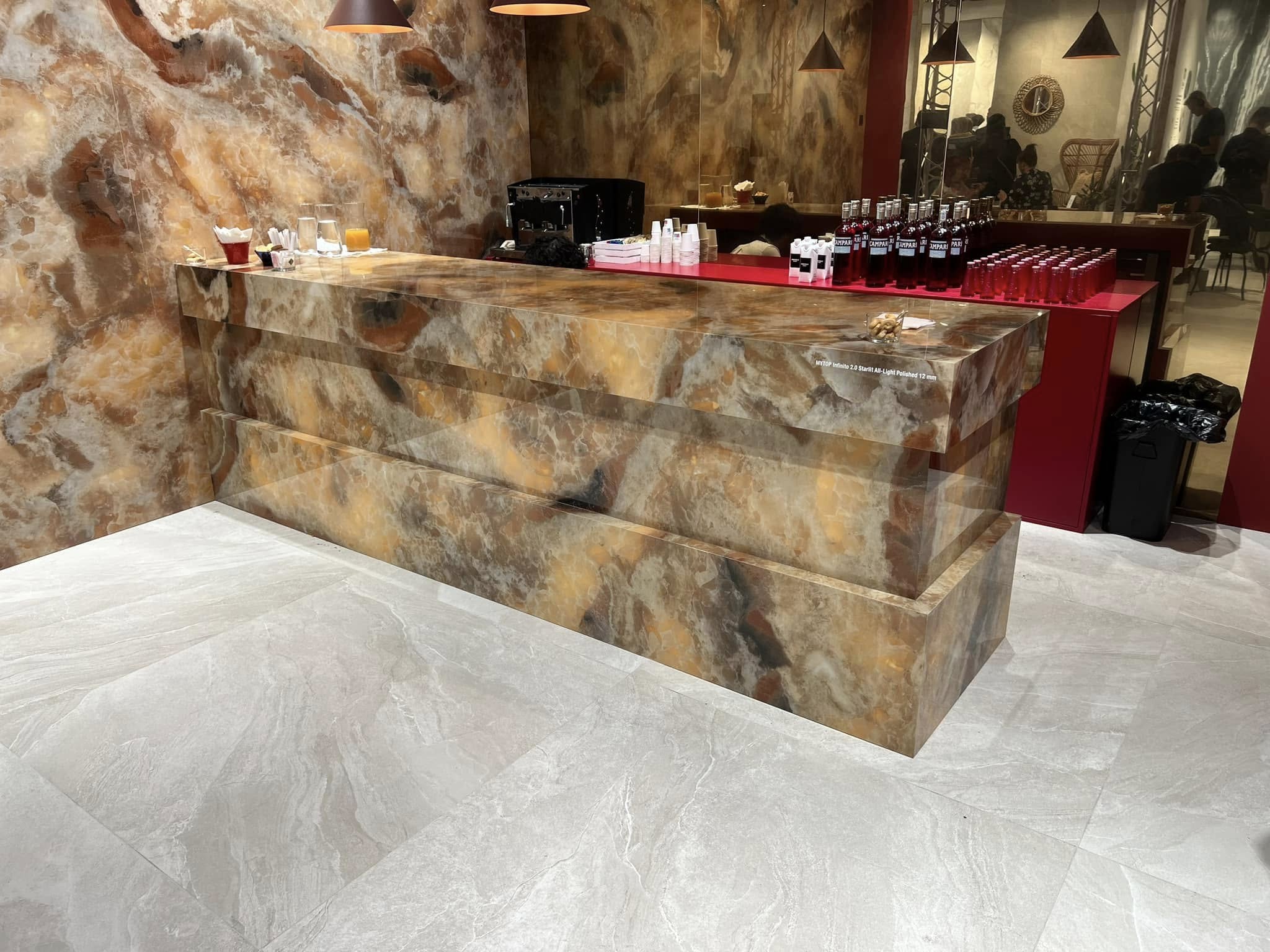 Le grandi lastre in grès porcellanato rappresentano, oggi, la migliore tra le soluzioni in grado di garantirti sia la funzionalità - necessaria per un locale pubblico - che l'estetica ad un costo ragionevole.
