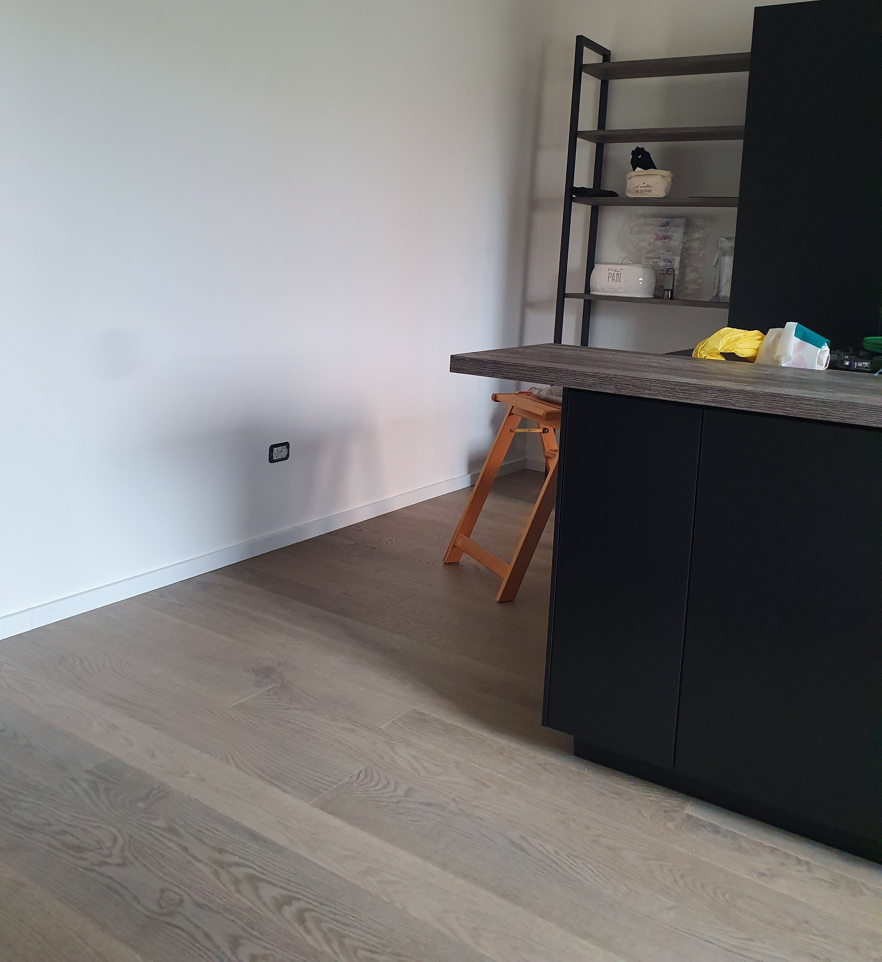 Le ristrutturazioni sono sempre fonte di sorprese ed imprevisti. Ma in questo caso, in ogni stanza c'è stata una scoperta! La demolizione di alcune pareti ha permesso di ritrovare le vecchie travi sotto ai solai, ancora perfettamente intatte. Si è così deciso di lasciare a vista alcuni soffitti originali: nella zona giorno sono stati ritrovati dei travi di colore scuro mentre nella camera matrimoniale le travi dell'epoca sono di color grigio.