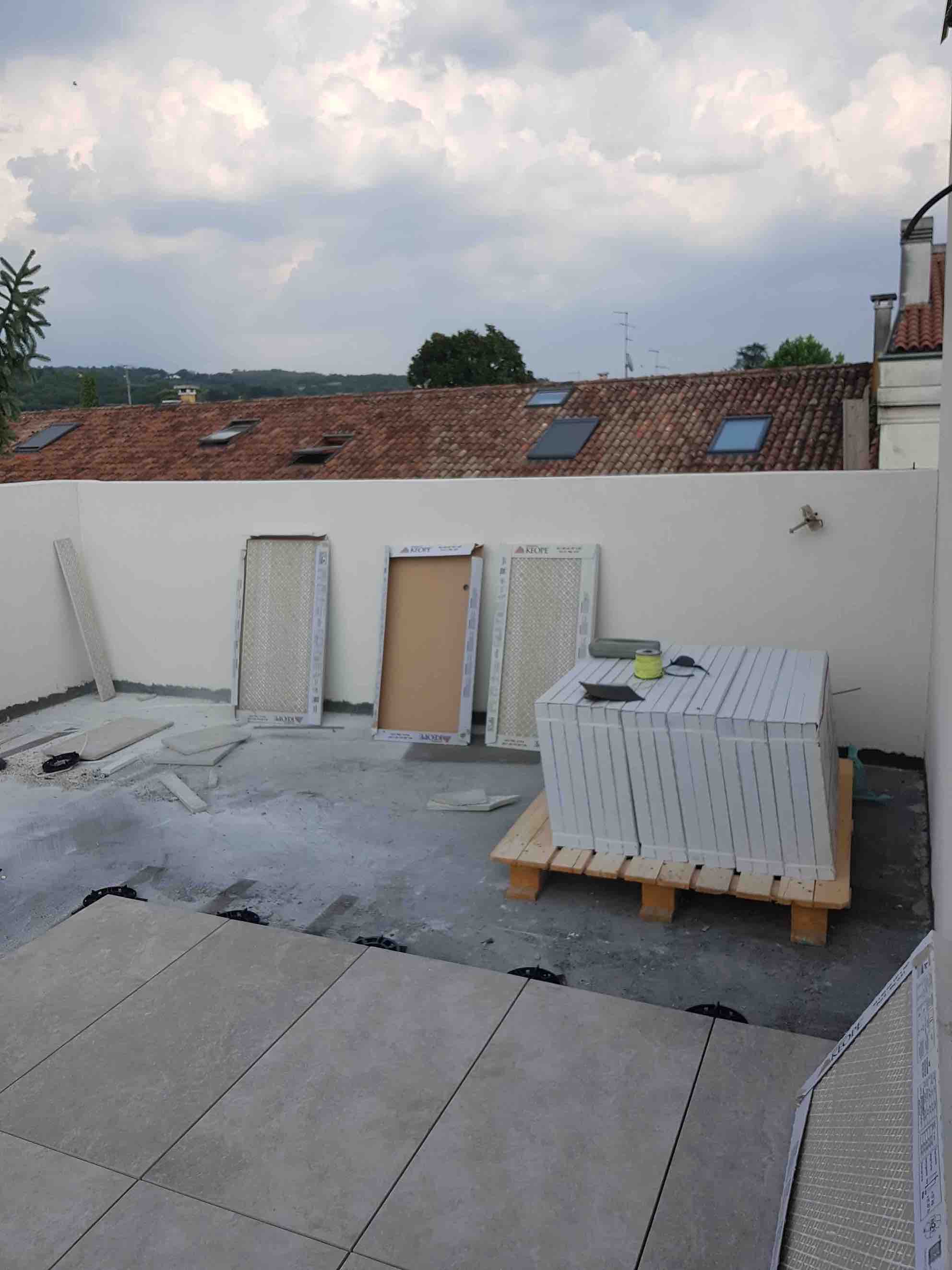 Posa di grès spessore 2 cm. su supporti in un terrazzo a Vicenza
