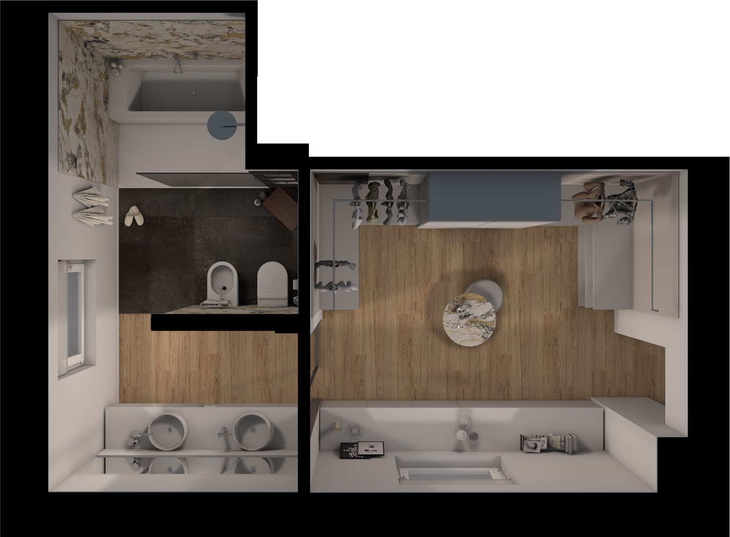 In questa tipologia di bagni si può trovare la classica vasca in ghisa smaltata bianca con i piedini a zampa di leone oppure un top bagno in marmo.