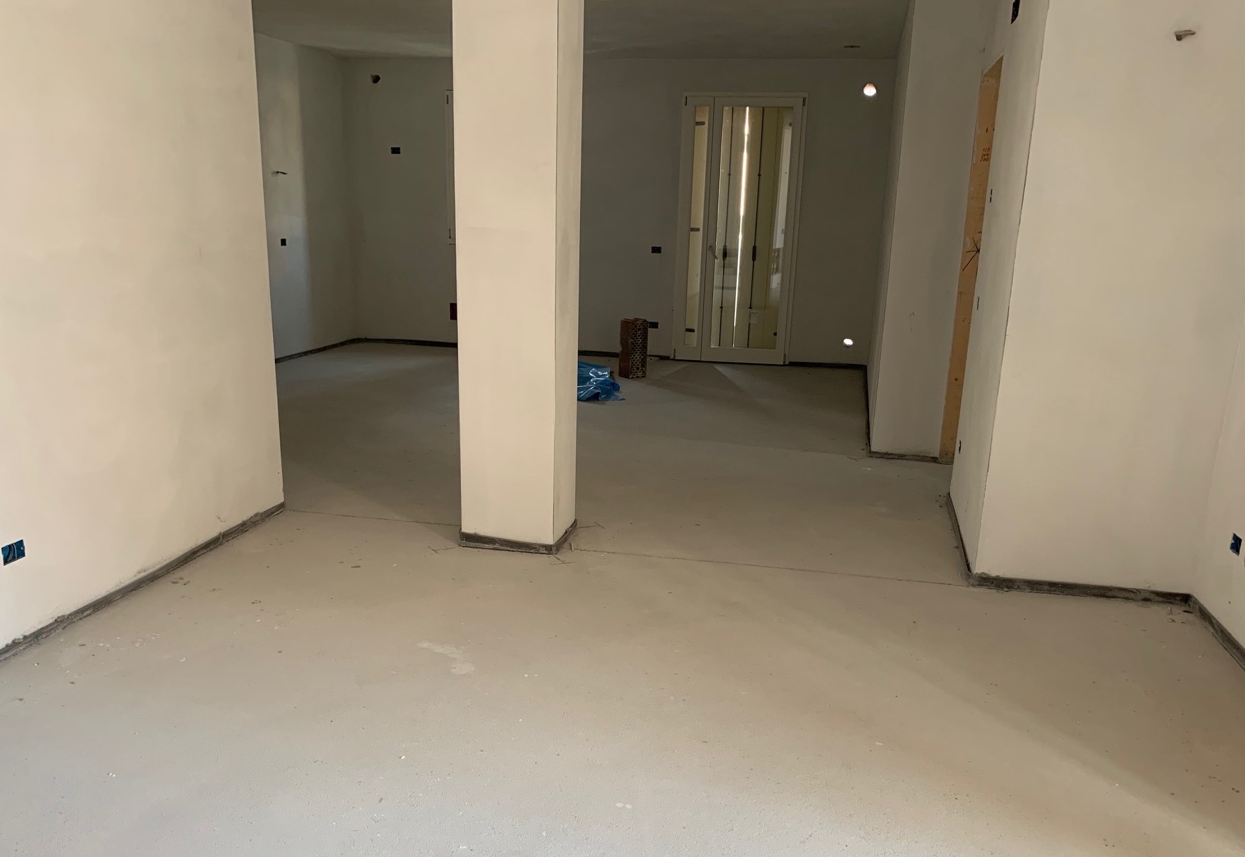 Il piastrellista per la posa delle piastrelle rettificate formato 20x80 e 10x80 (con fuga minima) ha utilizzato la colla kerakoll bioflex S1. La fuga è stata stuccata con il prodotto kerakoll fugabella. I battiscopa non sono stati stuccati volutamente e presentano delle fessure. La bandella perimetrale è stata tagliata filopavimento.