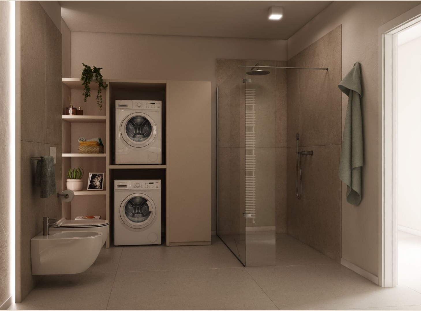Per i mobili, invece, è consigliabile optare per laminati o melaminici idrorepellenti, che resistono a schizzi e vibrazioni della lavatrice senza deformarsi.