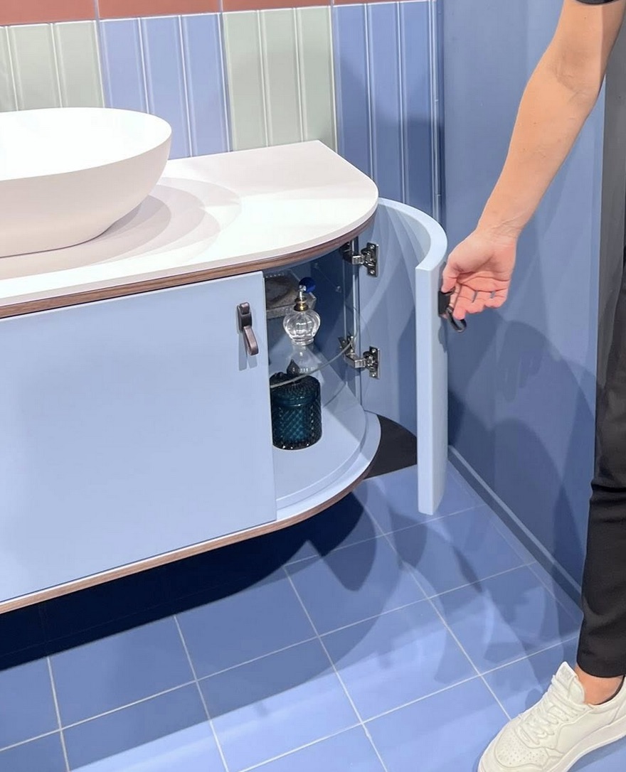 Il mobile freestanding può essere posizionato sia a parete sia come elemento centrale, trasformando il lavabo in un vero e proprio oggetto di design. Si abbina perfettamente a bagni con rivestimenti minimal, pavimenti continui o docce walk-in, enfatizzando lo stile contemporaneo. Come abbiamo accennato è una scelta che spesso i nostri clienti fanno per il bagno degli ospiti nella zona giorno, dove si privilegia l'estetica rispetto alla funzionalità e alla capienza del mobile.