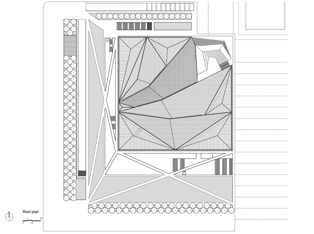 Una struttura che deve apparire leggera, riflettente e capace di generare spazio all'interno. Un guscio avvolgente e accogliente, nel caso di strutture politiche o istituzioni culturali con un gran numero di visitatori.
