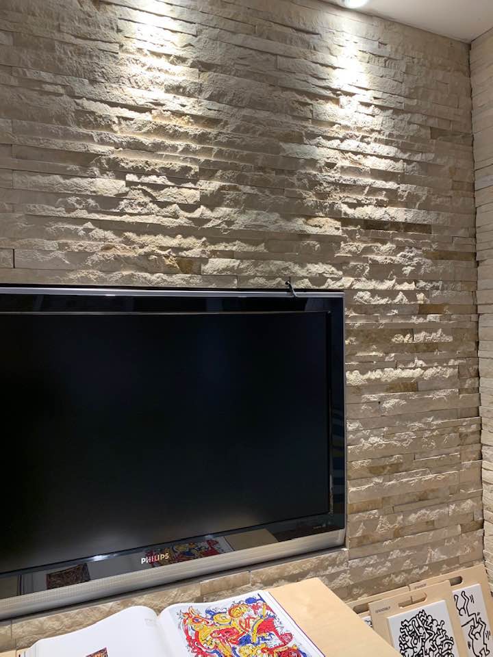 Rivestimento dietro la TV in pietra