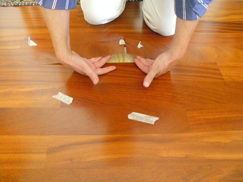 ti sconsiglio di attuare un intervento "fai da te", è meglio rivolgersi ad un posatore di legno che ti potrà garantire un miglior risultato. In ogni caso noi utilizziamo una colla vinilica molto simile alla vinavil.