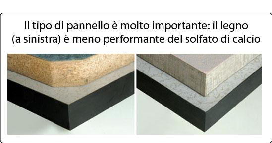 - La densità ed il peso dei materiali utilizzati - soprattutto della tipologia di pavimento di superficie scelto - determineranno le caratteristiche insonorizzanti del pavimento.