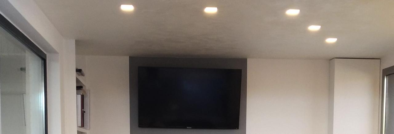 Sappiamo bene quanto sia fondamentale la luce artificiale per il benessere di chi vive lo spazio. Per questo ho studiato con attenzione anche l'illuminazione. A soffitto ho previsto dei faretti ad incasso. Per realizzarli occorre installare delle controllasse in gesso che vanno inglobate nel cartongesso in modo da ottenere una superficie continua da cui la luce esce, quasi inattesa.