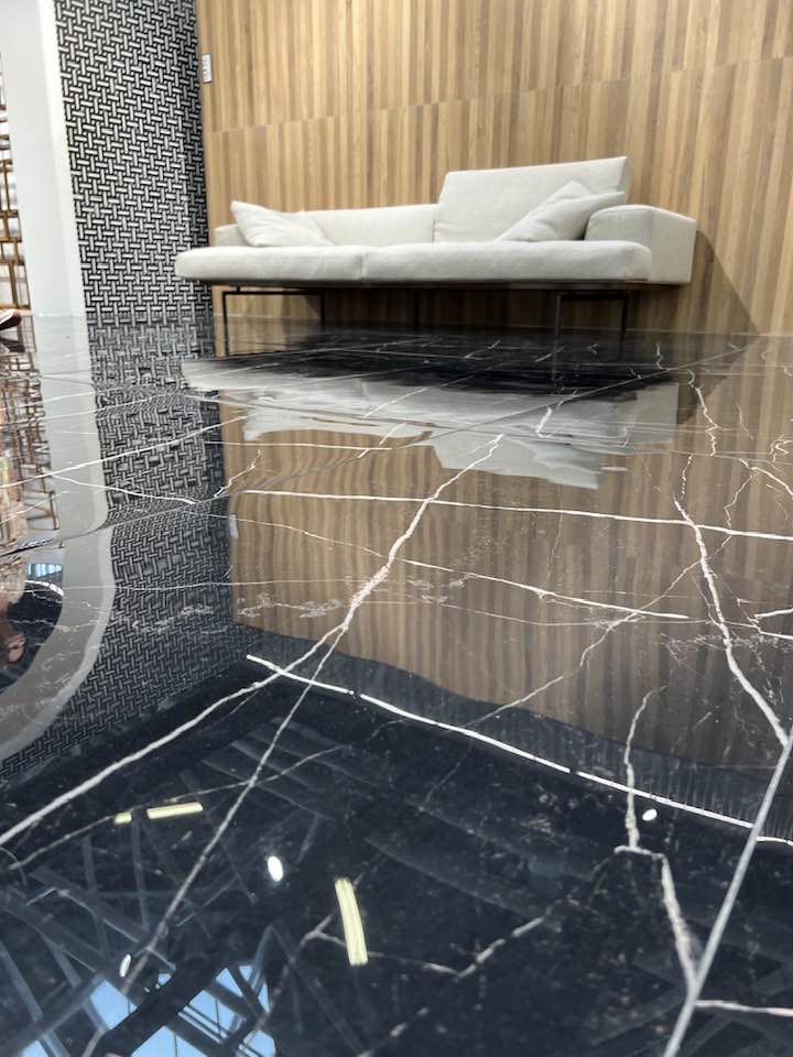 Le lastre effetto marmo conferiscono al soggiorno eleganza e luminosità. Perfette per ambienti classici o contemporanei, creano un’atmosfera raffinata e sofisticata, dando una sensazione di leggerezza e prestigio. Le venature naturali del marmo possono diventare il protagonista della parete, dialogando con arredi minimal o complementi in metallo e vetro.