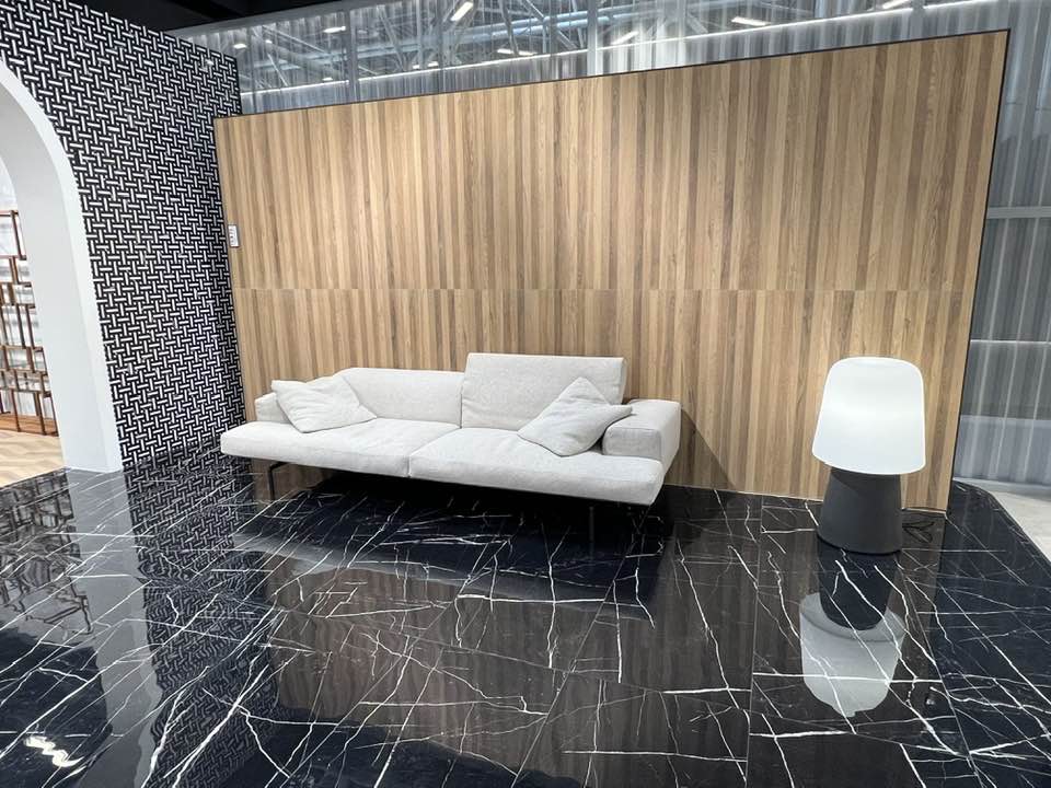 Per chi vuole spingersi oltre le proposte standard, esistono lastre artistiche personalizzate, cioè realizzate su disegno, sempre in grandi formati. Queste superfici permettono di creare composizioni scenografiche continue, con grafiche personalizzate o opere d’arte che diventano protagoniste del soggiorno. Ideali per chi cerca una parete unica e di forte impatto visivo, capace di definire l’intero ambiente.
