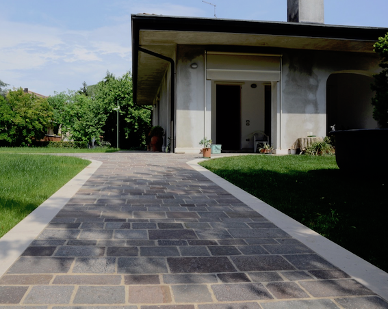 Marciapiede e vialetti in porfido squadrato a Vicenza