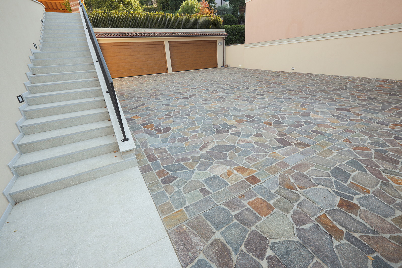 Hallo! I'm Andrea Ferrari and today, I'll guide you through a brief tour of Montecchio Maggiore (Vicenza) to showcase an outdoor flooring project I've overseen. While it may not be one of the most intricate designs I've completed, it stands out for its simple yet elegant appeal, a result of collaborative efforts with our skilled installation team (whom I'd like to express my gratitude for their impeccable work).