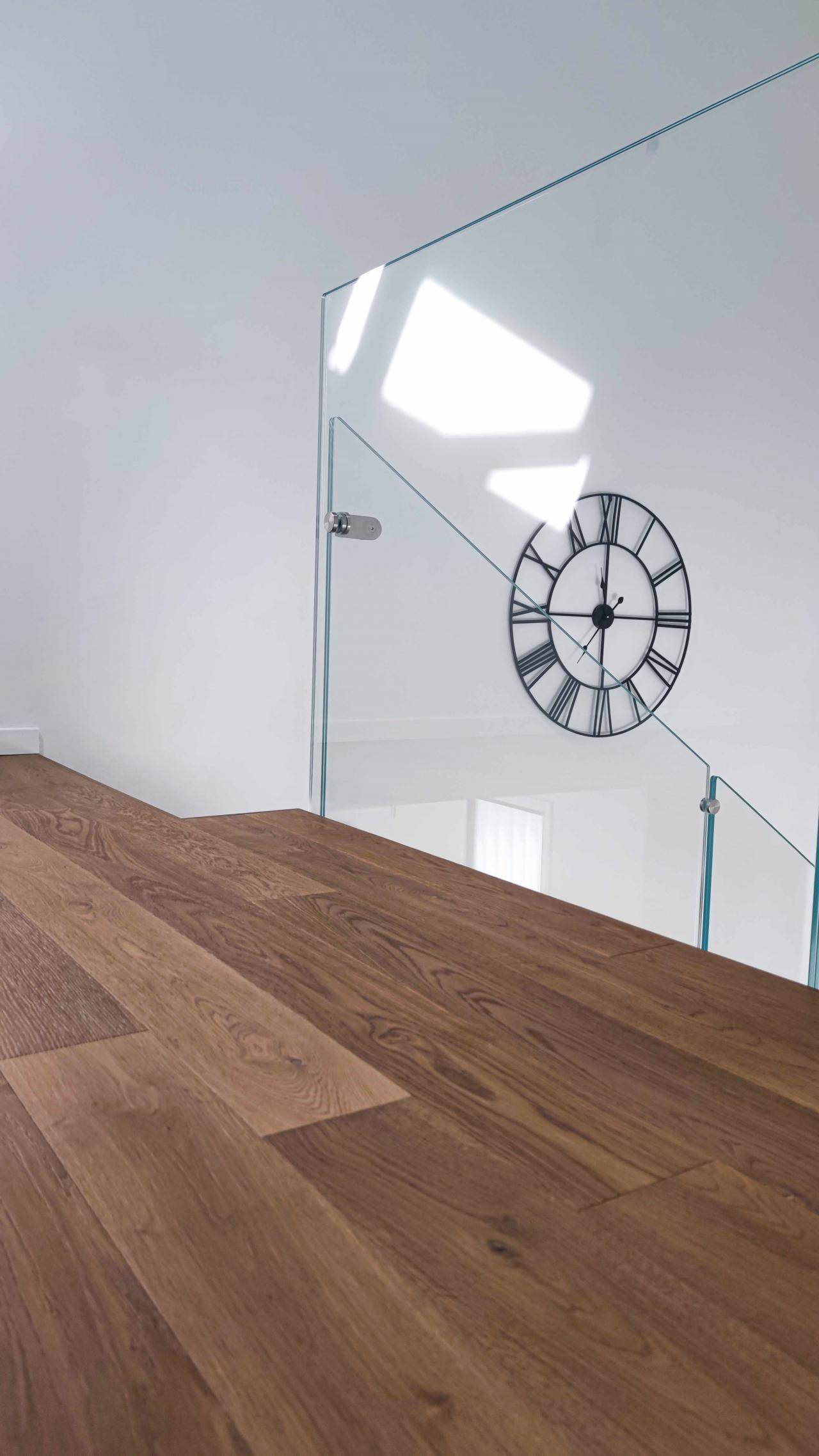 They turned to us to do the floors and bathrooms in their new home. The couple had already used other contractors, so the biggest challenge was to work with everyone involved in the construction of the house to create a final result that was as uniform and consistent as possible. They came to us with ideas that were already quite clear: a modern, clear and practical floor on the ground floor and parquet on the upper floor, modern and timeless bathrooms that would blend in with the warm, contemporary style of the house.