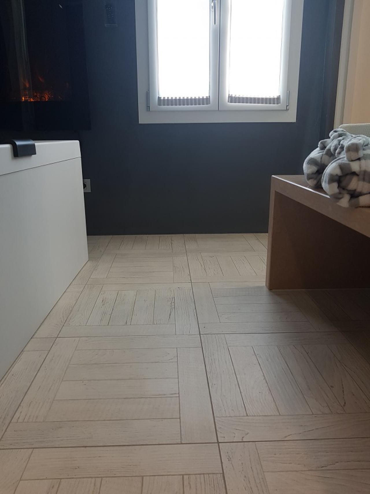 Wood-effect tiles in a B&B in Verona