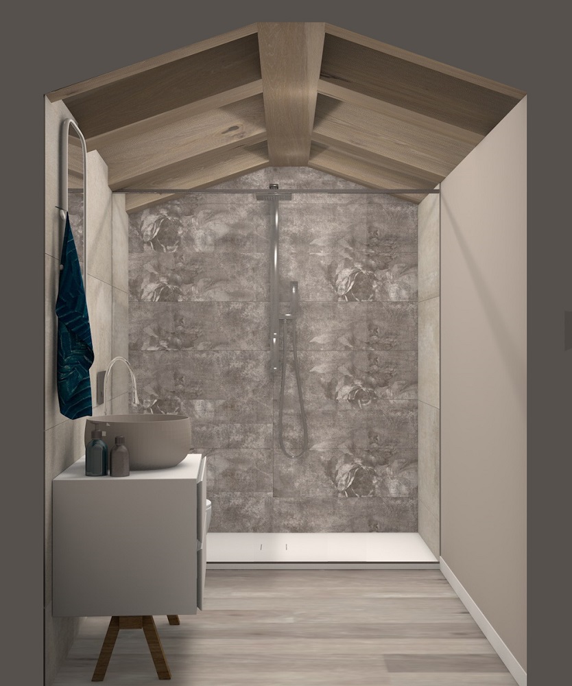 - The attic bathroom allows us to take advantage of a new dimension: the roof, which, by tilting, envelops, welcomes, generates movement.