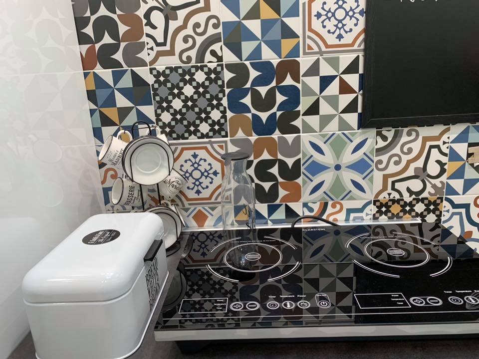 ► Cementine as a kitchen wall covering in Martina's house in Arzignano (Vicenza)