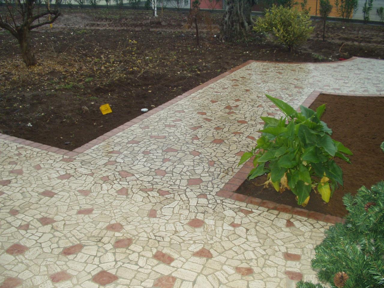 Here we have created an important access road in squared porphyry, decorated with pebbles. The protagonist of the realisation is the large decoration in river pebbles at the central intersection.