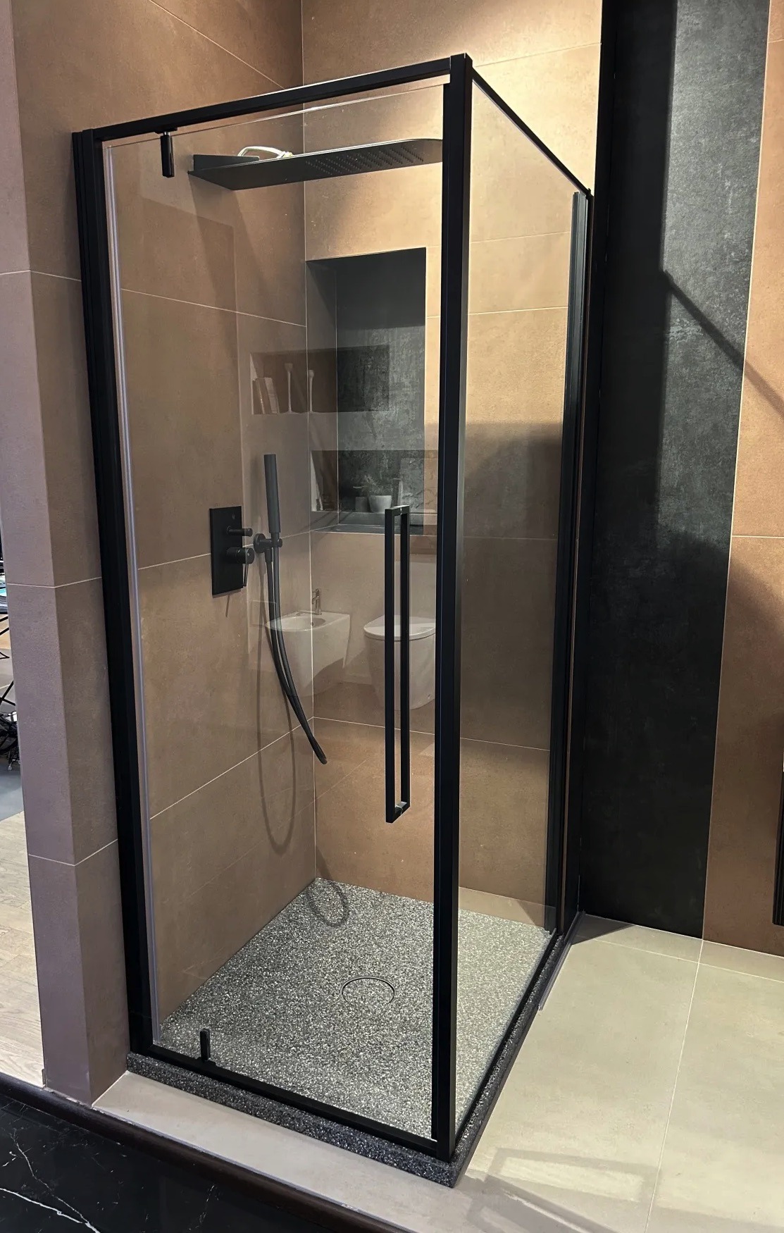 Box doccia in cristallo trasparente temperato spessore 6 mm, profili nero opaco,