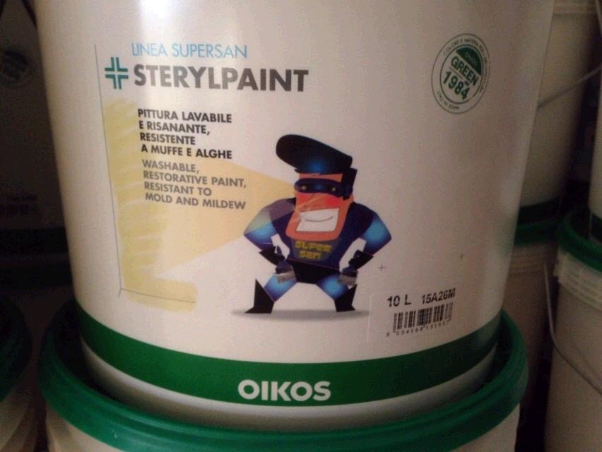 STERYLPAINT è una speciale pittura antimuffa, lavabile, traspirante, particolarmente efficace nella prevenzione di muffe e alghe, soprattutto in quegli ambienti come cucine, bagni, piscine ecc dove la forte presenza di vapore acqueo ne favorisce lo sviluppo. Grazie agli speciali battericidi e fungicidi ad ampio spettro il potere sterilizzante viene mantenuto a lungo proteggendo nel tempo la parete. Con basso odore, non infiammabile, amico dell'uomo e dell'ambiente.