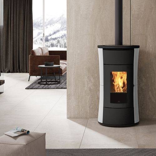dotata di focolare in ghisa e porta vetro ceramico panoramico.
