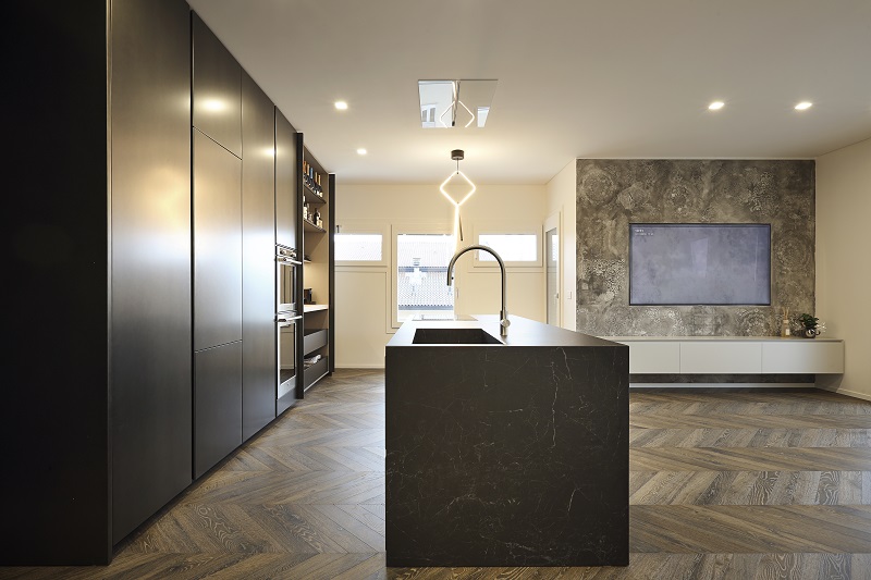 Un'abitazione in cui ci hanno affidato ogni finitura ed arredo, in cui il pavimento in legno di rovere dai toni scuri e caldi del cioccolato sale la scala a sbalzo e pavimenta tutte le stanze della zona notte. Clicca qui se vuoi guardare altri dettagli.