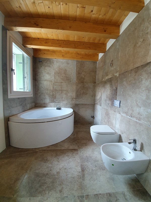 In questa abitazione a Verona abbiamo posato delle piastrelle effetto cemento, oltre al massetto, cioè al fondo di posa necessario per l'incollaggio.